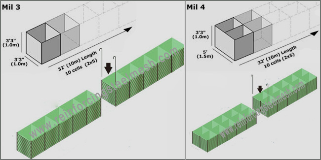 Unlike common welded gabion, after set up in the field, Hesco barrier can be filled inside with soil, sand or gravel, to become a protection wall. This means raw material are very easy to get, especially suitable for the coastal area where is abundant in sand.